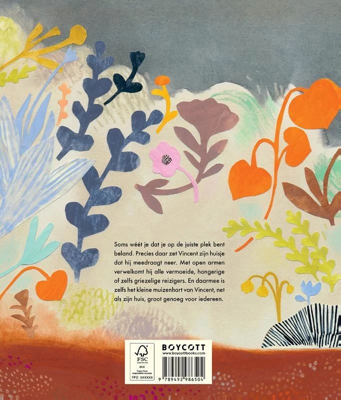 Vincent is een klein muisje met laarsjes aan zijn pootjes, een hoed op zijn hoofd en een huisje op zijn rug. Hij reist rond en zet zijn huisje neer als hij voelt dat hij nodig is. Met open armen verwelkomt hij alle vermoeide, hongerige of zelfs griezelige
