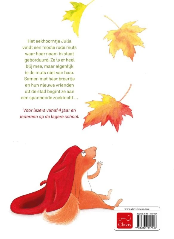 Het eekhoorntje Julia vindt een mooie rode muts waar haar naam in staat geborduurd. Ze is er heel blij mee, maar … eigenlijk is de muts niet van haar. Ze besluit op zoek te gaan naar het meisje dat hem verloor.