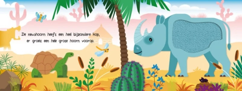 Hou jij ook zo van wilde dieren? In dit boekje kun je ze niet alleen zien, maar ook aaien! Voel maar eens aan de manen van de leeuw en aan de vacht van een zebra.