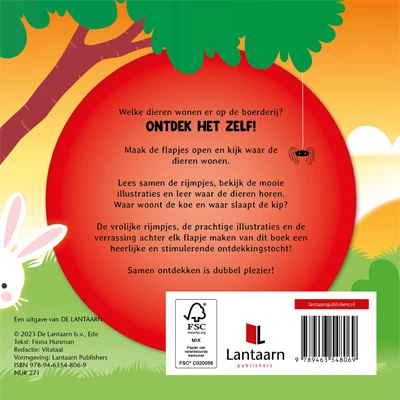 Welke dieren wonen er op de boerderij? Ontdek het zelf! Maak de flapjes open en kijk waar de koe woont en de kip slaapt. Stevig kartonboek met vrolijke rijmpjes om samen op ontdekkingstocht te gaan.