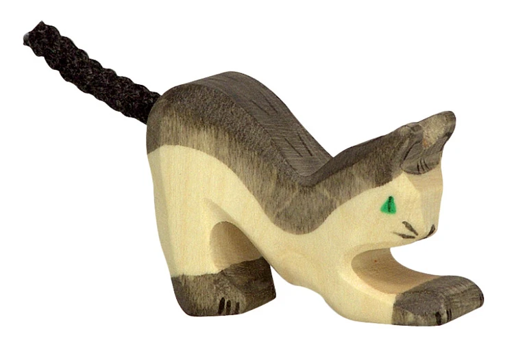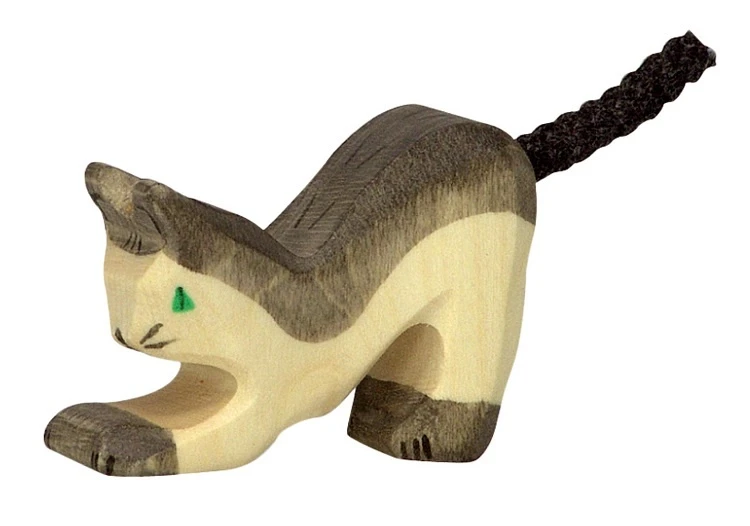 Maak je eigen boerderij met de houten dieren van Holztiger en daar mag deze kat niet in ontbreken. Deze kleine kat ligt met beide voorpoten op de grond. Afmeting: 4×1.9×3.3 cm