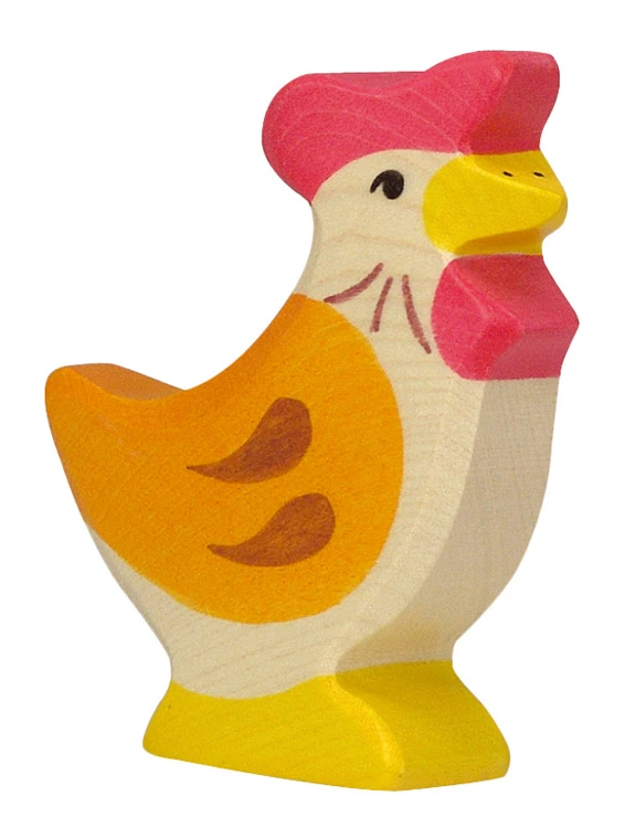 Maak je eigen boerderij met de houten dieren en figuren van Holztiger, daar mag deze kip niet in ontbreken. Afmeting: 7×1.9×7 cm