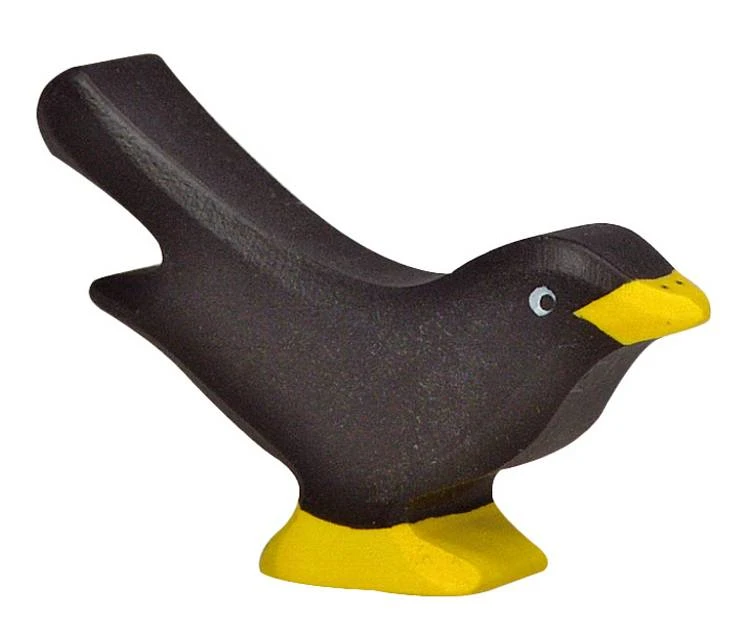 Deze merel van Holztiger heeft zijn staartje omhoog gericht en zijn kopje recht vooruit. Afmeting: 6×1.5×3.5 cm