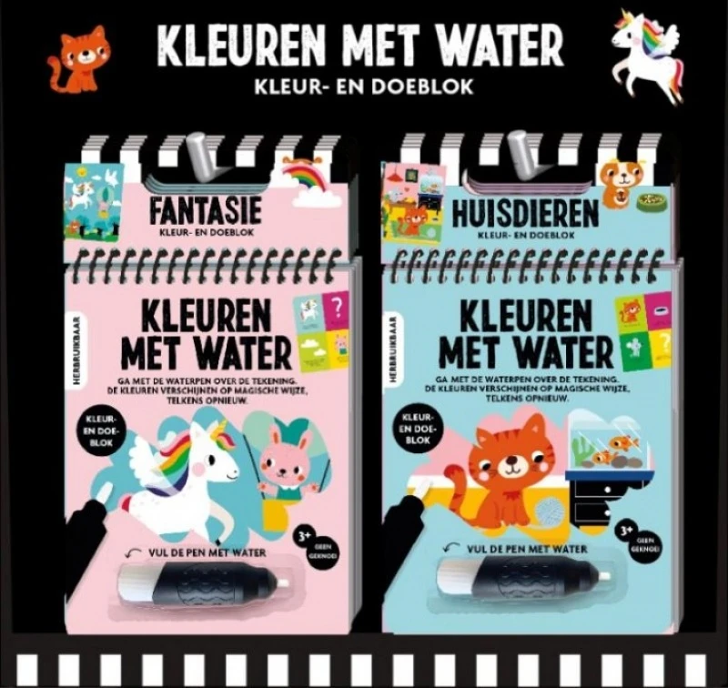 Kleur de tekening in en laat de pret (opnieuw) beginnen! De kleuren verdwijnen vanzelf weer als je de tekening laat drogen. Geschikt voor thuis of onderweg. Je krijgt het roze boekje, inclusief de pen.