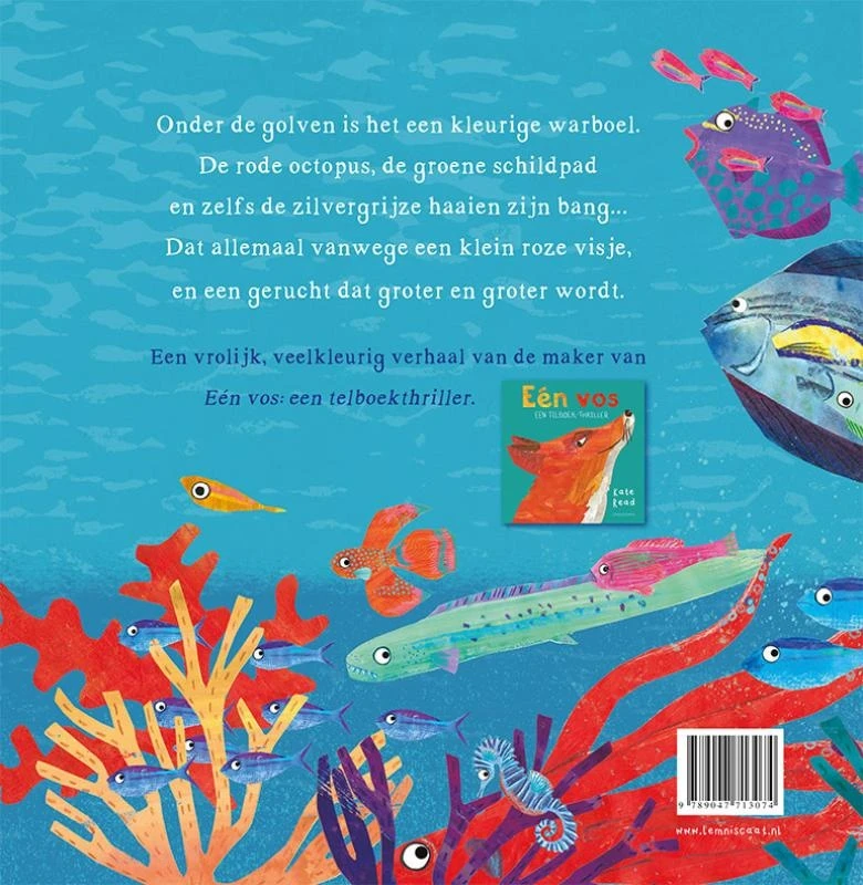 Een kleine actie heeft grote gevolgen… Een kleurenboek. Het kleine, roze visje zet een kettingreactie in gang, die groter en chaotischer wordt, tot HAP! ze opeens helemaal alleen is in de oceaan. Waar is iedereen gebleven? Volg alle kleurige zeewezens van