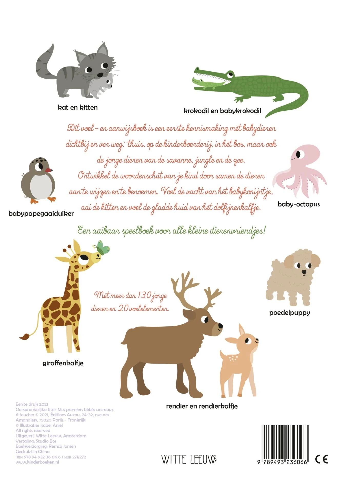 Dit voel- en aanwijsboek is een eerste kennismaking met babydieren dichtbij en ver weg: thuis, op de kinderboerderij, in het bos, maar ook de jonge dieren van de savanne, jungle en de zee.