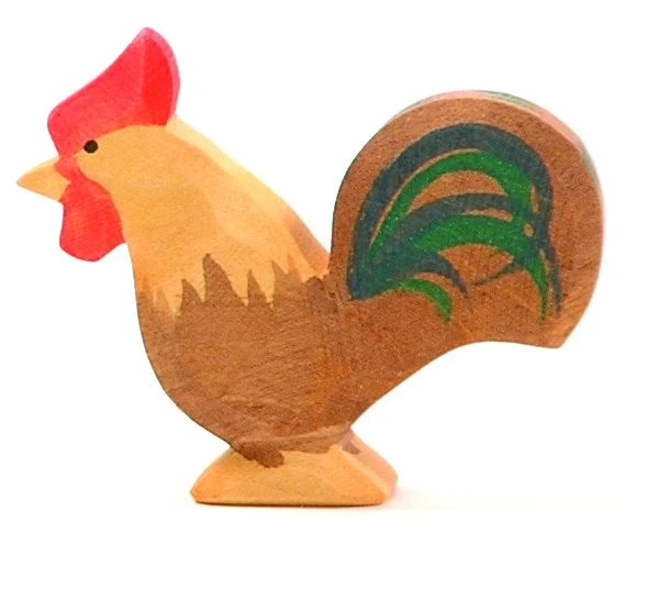 Deze bruin gekleurde haan van Ostheimer staat rechtop. Hoogte: 5.5Â cm