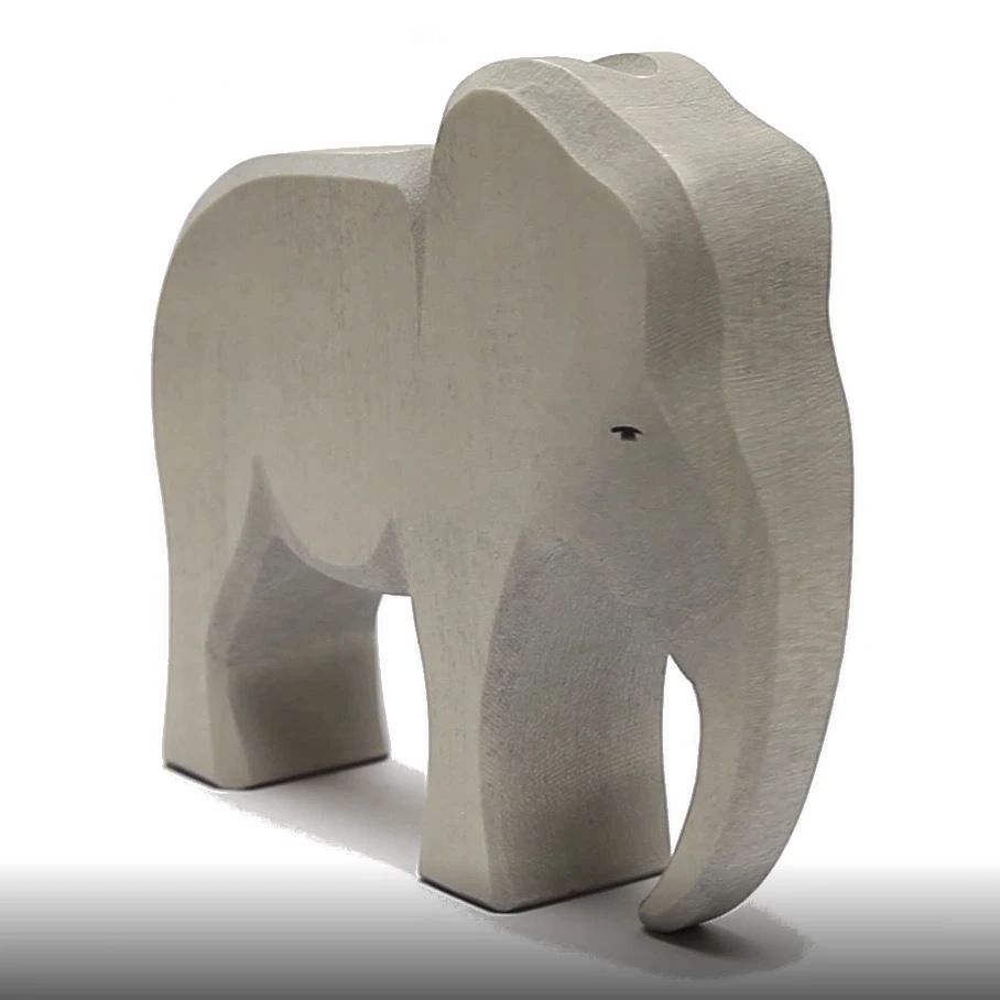 Deze grote olifant van Ostheimer heeft zijn slurf naar beneden op de grond gericht. Hoogte: 14.5Â cm