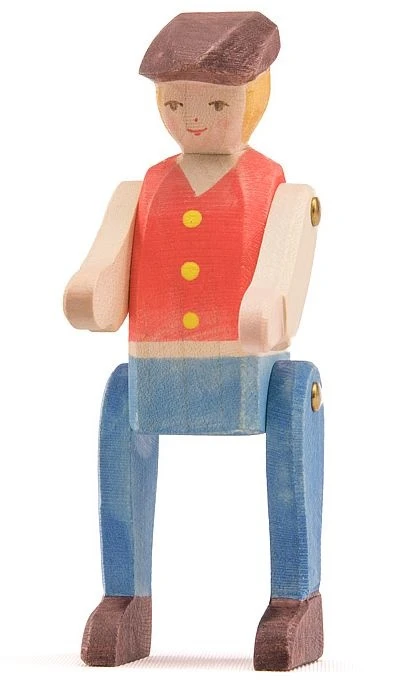 Dit is de ruiter van Ostheimer. Deze met de hand gemaakte en van inheems hout geteelde ruiter past goed bij de overige figuren en toebehoren. Zo kun je jouw eigen manege samenstellen. Hoogte: 14,5 cm.