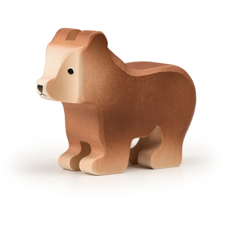Deze bruine beer van Trauffer is met de hand gemaakt van lindehout in Zwitserland, de gebruikte verf is vrij van chemicaliën. De bruine beer is robuust genoeg om mee te spelen. Afmeting: 10×8 cm.