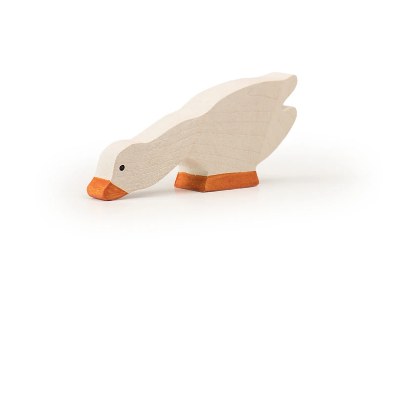 Deze gans van Trauffer is rustig aan het eten en is met de hand gemaakt van lindehout in Zwitserland, de gebruikte verf is vrij van chemicaliën. De gans is robuust genoeg om mee te spelen. Hoogte: 4 cm.