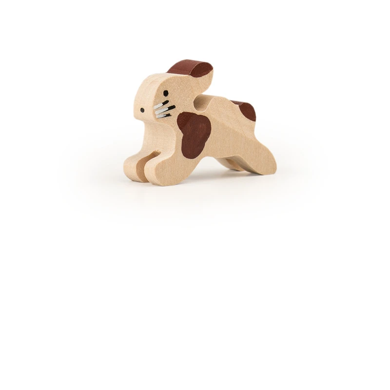 Deze haas van Trauffer heeft een rennende houding en is met de hand gemaakt van lindehout in Zwitserland, de gebruikte verf is vrij van chemicaliën. De haas is robuust genoeg om mee te spelen. Hoogte: 4 cm.