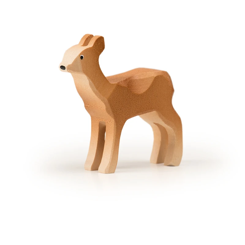 Dit ree van Trauffer is met de hand gemaakt van lindehout in Zwitserland, de gebruikte verf is vrij van chemicaliën. De ree is robuust genoeg om mee te spelen. Hoogte: 6 cm.