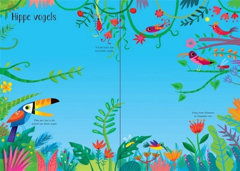Reis naar verafgelegen regenwouden en ontdek een krokodillenkreek, een olifantenstoet en papegaaien. Achterin vind je ruim 300 stickers van tijgers, toekans, luiaards, orang-oetans en nog veel meer.