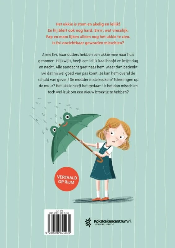 Arme Evi, haar ouders hebben een ukkie mee naar huis genomen. Hij kwijlt, heeft een lelijk kaal hoofd en krijst dag en nacht. Kortom: hij heeft zijn plek ingenomen in het huis en alle aandacht gaat naar hem