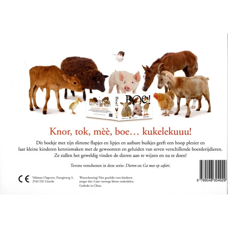 Knor, tok, mèè, boe… kukelekuuu! Dit boekje met zijn slimme flapjes en lipjes en aaibare buikjes geeft een hoop plezier en laat kleine kinderen kennismaken met de gewoonten en geluiden van boerderijdieren. Ze zullen het geweldig vinden ze te voelen!