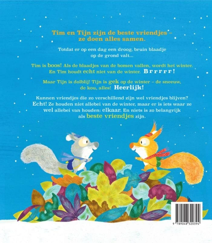Tim en Tijn zijn de beste vriendjes – ze doen alles samen. Totdat er op een dag een droog, bruin blaadje op de grond valt… Tim is boos! Als de blaadjes van de bomen vallen, wordt het winter.
