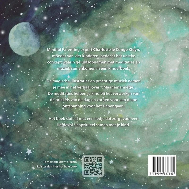 De magische illustraties en prachtige muziek nemen je mee in het verhaal over ’t Maanemannetje. De meditaties helpen je kind bij het verwerken van de prikkels van de dag en zorgen voor een diepe ontspanning voor het slapengaan. Het boek sluit af met een liedje dat zorgt voor een liefdevol slaapritueel samen met je kind.